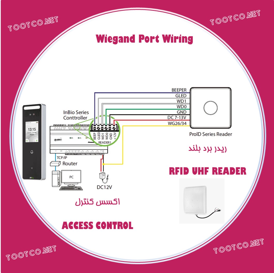 پروتکل وایگند، به عنوان یکی از ارکان اصلی در حوزه سیستمهای کنترل دسترسی و امنیت، بستری استاندارد و حیاتی برای تبادل اطلاعات میان دستگاههای خوانشگر (Reader) و کنترلگرهای مرکزی (Access Control) فراهم میآورد. این سازوکار ارتباطی، از طریق دو رشته سیم اختصاصی، امکان ارسال سیگنالهای هویتی را میسر میسازد. دستگاههای ریدر، با بهرهگیری از فناوریهای متنوعی چون تشخیص بیومتریک (مانند اثر انگشت، چهره یا کف دست) و روشهای غیرزیستی نظیر RFID و کدهای QR، هویت اشخاص یا اشیاء را مورد سنجش قرار میدهند. پس از احراز هویت، کد منحصربهفرد شناساییشده، از طریق پروتکل وایگند به واحد کنترل دسترسی یا سامانه حضور و غیاب ارسال میشود تا در صورت مطابقت و تأیید، فرمان لازم برای فعالسازی رله یا گشودن درب صادر گردد.