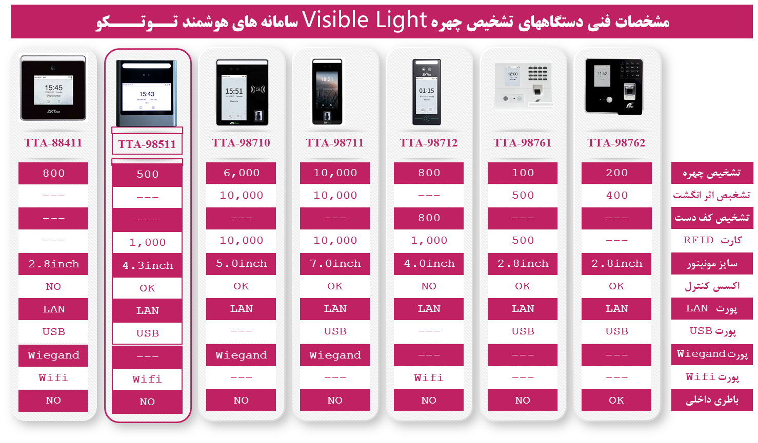 · مشخصات فنی و قابلیتهای دستتگاه حضور غیاب TTA-98511 :